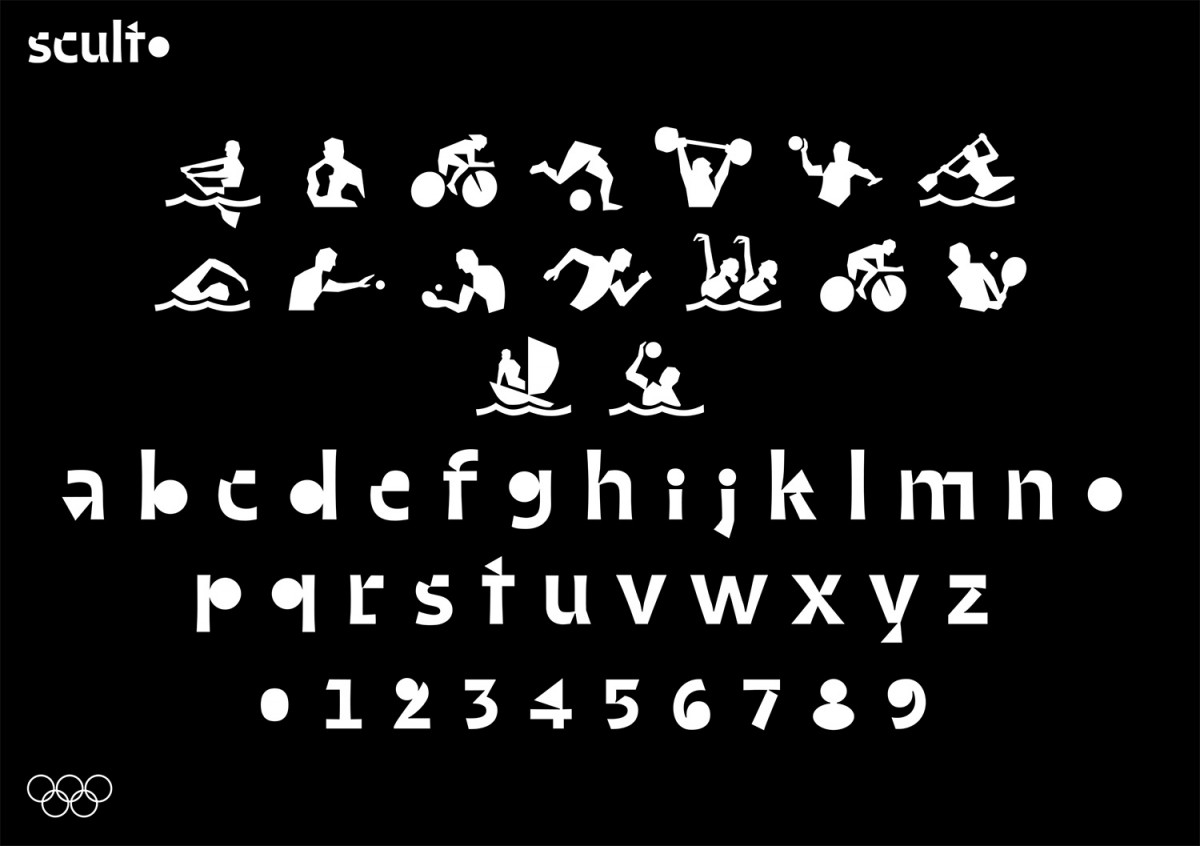 Le rapprochement entre la sculpture et l’athlète modelant son corps par la pratique sportive a été un moteur dans la conception graphique du double système. En sculptant les masses, un procédé s’installe entre formes élémentaires et vides. Dans cette même continuité, les pictogrammes jouent du cadrage pour permettre une meilleure appréhension de l’action.