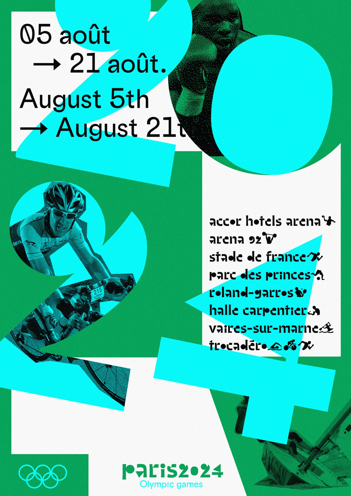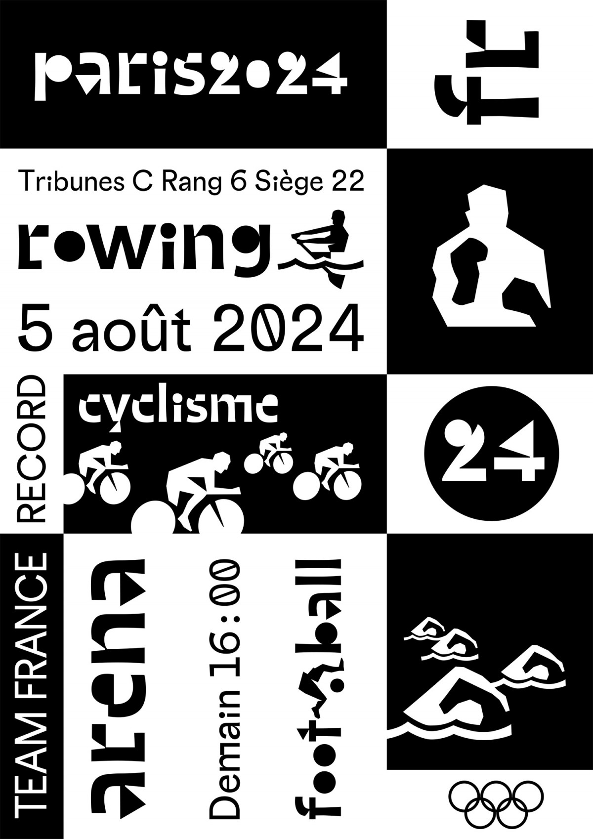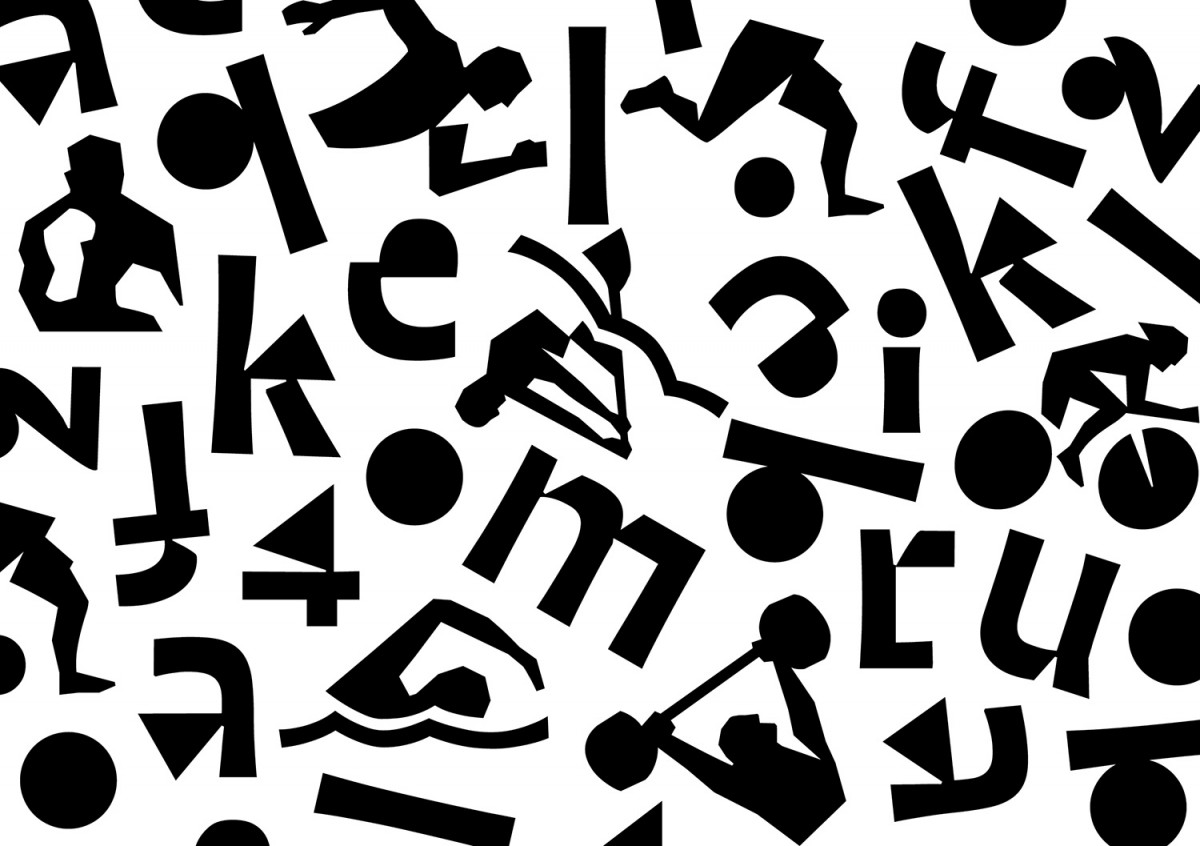 Dans un contexte international et multilingue, les Jeux olympiques se sont dotés dès Tokyo 1964 d’un double système graphique partagé entre typographie et pictogrammes sportifs. Souvent gérées séparément, lettres et images ont rarement entretenu une relation graphique et spatiale au delà des éditions, les deux fonctionnant le plus souvent avec leur propre autonomie.