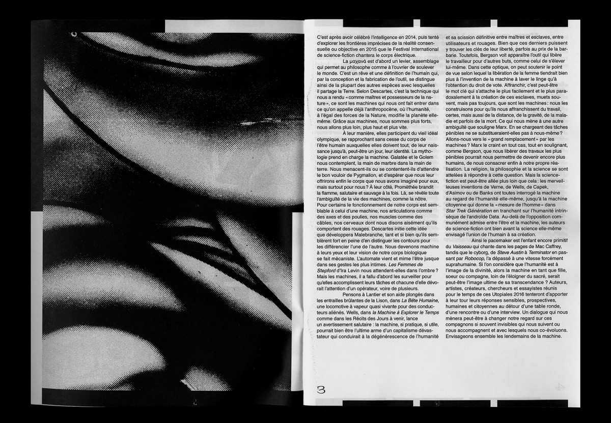 Pour élaborer l’identité visuelle de l’édition 2016 des Utopiales dont le thème est Machines, il a d’abord fallu se confronter aux types d’images véhiculées jusqu’à présent par la science-fiction, et notamment celles reprises sur les affiches dont le festival confie habituellement la réalisation à un illustrateur.